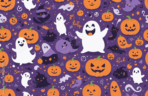 cute halloween festival illustration pattern background cartoon with ghost and pumpkin