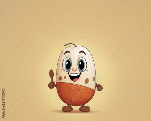 cartoon, hot drink, bean, cute, friendly, advertisement, illustration, funny, character, lima, delicious, spoon, children, happy, cooking, organic, fresh, round, food, smile, art, monster, face, head, fun, isolated, children, drawing, yellow, toy, brown