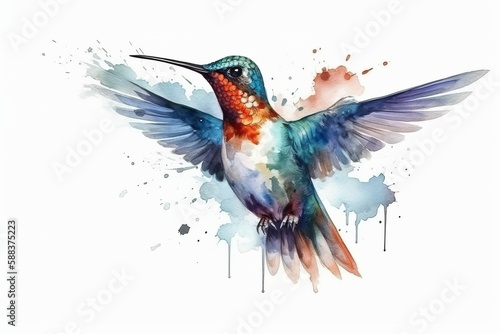 Cute Hummingbird Watercolor. Generative AI