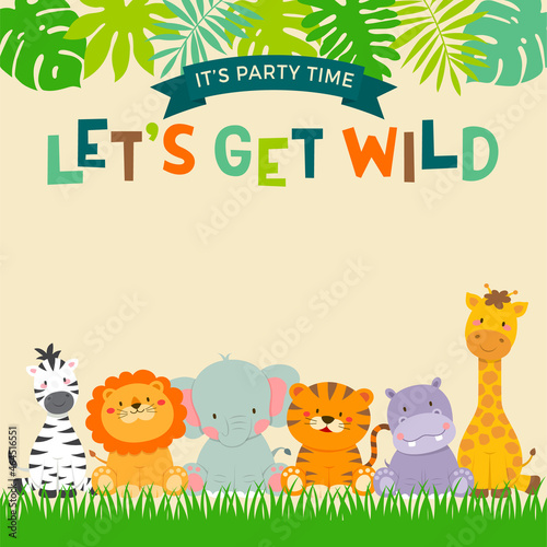 adorable, animal, baby, baby shower, background, banner, birthday, card, cartoon, celebrate, character, childhood, children, copy space, cute, design, elephant, event, forest, friends, friendship, fun, giraffe, greeting, happy, hippopotamus, holiday, illustration, infant, invitation, jungle, children, leaf, lion, nature, newborn, party, postcard, poster, template, text, tiger, typography, vector, wildlife, zebra, zoo