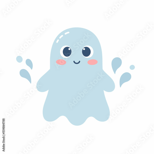ghost, cute, cartoon, halloween, skittish, phantom, apparition, spirit, character, friendly, reddening, face, smiling, joyful, aethereal, happy, cheerful, playful, whimsical, boo, blob, sweet, adorable, childish, children, innocence, innocent, simplistic