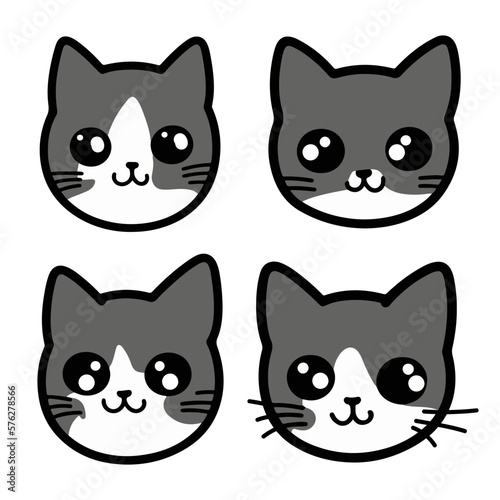 Cute kitten faces set. Collection of cat head shape icon. Vector cartoon illustration