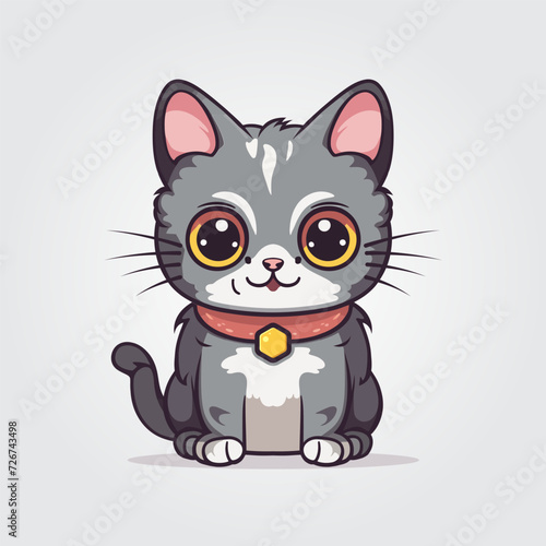 Cute kitty of kawaii style with big eyes and jolly smiling vector illustration in white background