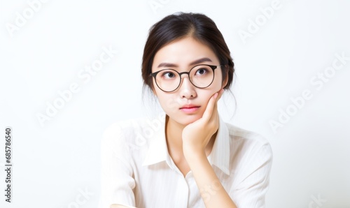 young, korean, woman, study, thinking, book, question, contemplation, serious, doubt, thoughtful, positive, student, stylish, emotion, indoor, pensive, businesswoman, lady, idea, model, brunette, expression, smile, learner, person, pretty, sitting, looking, copy space, studio, isolated, face, happy, female, hair, home, portrait, business, white, caucasian, girl, adult, cute, lifestyle, cheerful, attractive, fashion, beauty