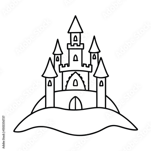 castle, cartoon, vector, house, illustration, building, architecture, tower, fantasy, fairy tale, mediaeval, fairy, town, princess, home, old, palace, fortress, art, design, city, tale, village, drawing, kingdom