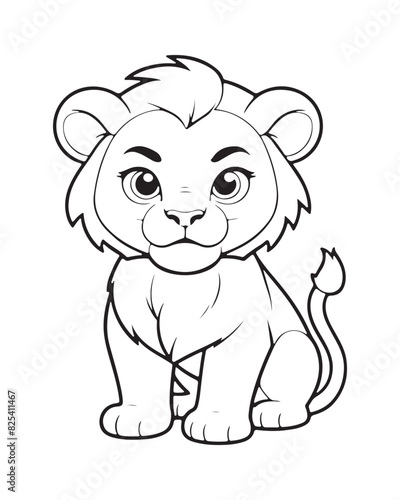 Cute Lion Coloring Pages for kids, Lion cartoon vector, Lion illustration, black and white color.