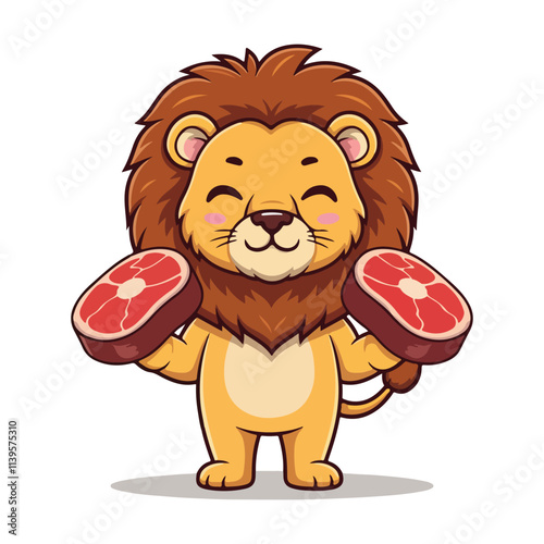 Cute Lion Standing Cartoon Vector Icon Illustration. Animal Nature Icon Concept Isolated Premium Vector. Flat Cartoon Style