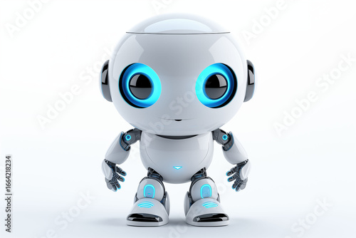 Cute little AI robot on white background