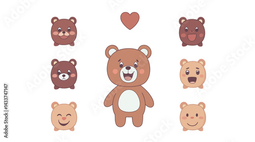 Cute Little Bear with Nine Grid Emoji – Vector Graphic Design
