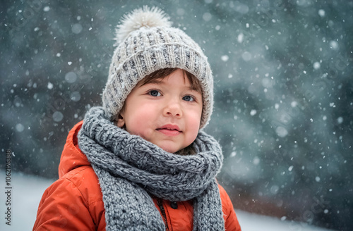winter, children, boy, girl, clothing, hat, jacket, foulard, knitted, walk, portrait, smile, joy, happiness, childhood, snow, snowfall, blizzard, cold, baby, children, face, cap, fun, little, christmas, smiling, outdoors, 1, season, people, adorable, children