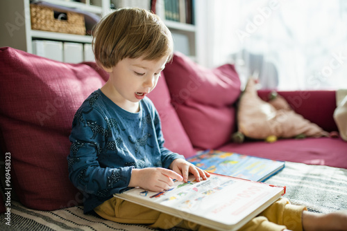 activity, book, boy, bright, browse, browsing, care, children, childhood, colourful, creative, cute, day care, daytime, development, education, examining, family, floor, fun, funny, happy, home, indoor, interior, children, learn, leaf, leisure, lifestyle, little, living room, page, preschool, kindergartner, read, reading, room, slow motion, sofa, sunny, toddler, flipped, window