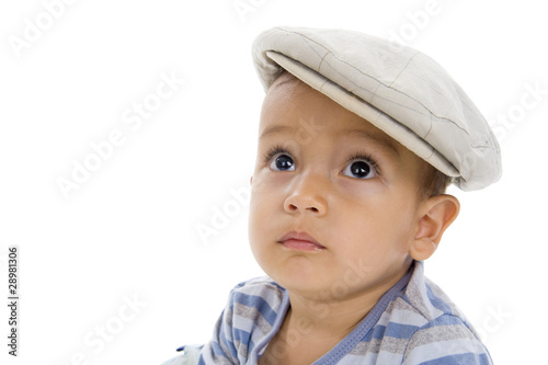 boy, cute, studio, looking, look, up, cap, hat, isolated, white, sweet, little, childhood, kindergartner, children, young, children, children, asian, multi, ethnic, racial, multiracial, multi-ethnic, portrait, background, lifestyle, fashion