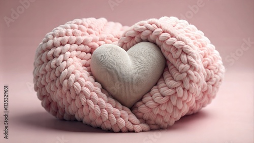 Cute Love Heart Soft and Cozy Knitted Scenes: Warm, Handmade Designs for Serene Stock Photos