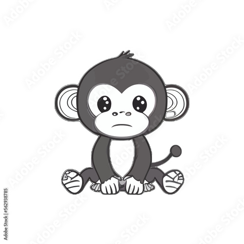 Cute monkey illustration vector, simple funny ape design