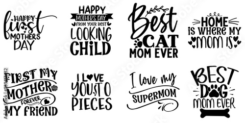 Cute Mothers Day Typographic Emblems, Invitation Bundle Vector Illustration for Sticker, Poster, Advertising