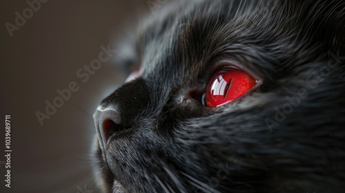 cat, felino, black, muzzle, closeup, eye, red, cute, kitten, pet, animal, whisker, fur, adorable, portrait, mammal, face, domestic, staring, gaze, curious, innocent, pretty, monochrome, detailed, charming, playful, alert, fluffy, sleek, mysterious, captivating, bold, high-coloured, shiny, glossy, calm, enchanting, intimate, lovely, tiny, cosy, smooth, velvet, dark, alluring, endearing, elegant
