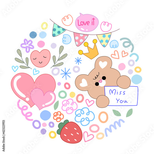 cute of set for sticker , postcard , invitation . vector illustration for kids on a circle background