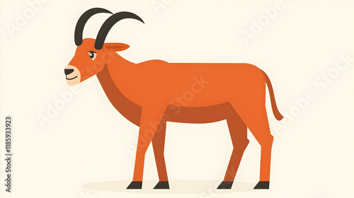 Cute orange antelope, profile view, simple cartoon style, white background, safari illustration.