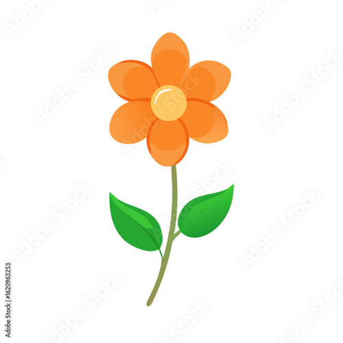 flower, orange, nature, plant, bloom, blossom, garden, botany, flora, leaf, green, stem, illustration, drawing, icon, clip art, vector, design, element, isolated, transparent, background, simple, cute, cartoon, spring, summer, decoration, organic, growth, beauty, fresh, vibrant, botanical