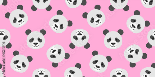 cute panda bear faces on pink background seamless pattern print design vector illustration