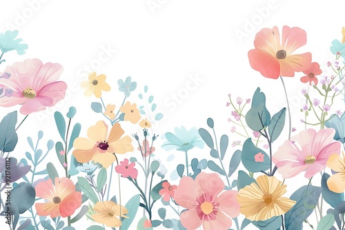 Cute pastel colorful spring flowers border with space on white background vector illustration of cute pastel watercolor floral frame border
