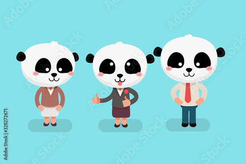 people, business, panda, suit, human, face, mammal, baby, wildlife, background, furry, pose, sweet, china, isolated, head, happy, fun, white, cartoon, nature, black, wild, character, bear, animal, vector, illustration, cute