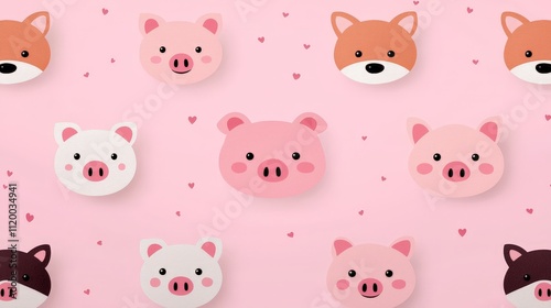 pig, dog, pink, cute, pattern, background, animal, face, illustration, design, graphic, wallpaper, texture, adorable, happy, cheerful, sweet, cartoon, vector, art, image, print, template, style, pretty, lovely, playful, childish, fun, festive, holiday, decoration, element, repeat, surface, digital, modern, simple, clean, minimal, aesthetic, flat, icon, mascot