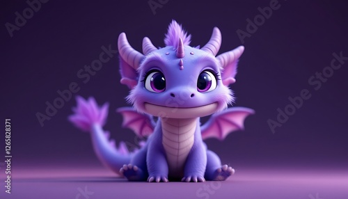 dragon, sitting, cartoon, friendly, smiling, cute, purple, fantasy, creature, animal, studio, isolated, mammal, furry, reptile, wing, tail, horn, eye, teeth, toe, paw, character, design, digital artwork, render, mammal, mascot, animation, graphic, children, playful, adorable, portrait, concept, domestic, beast, sweet, mythical