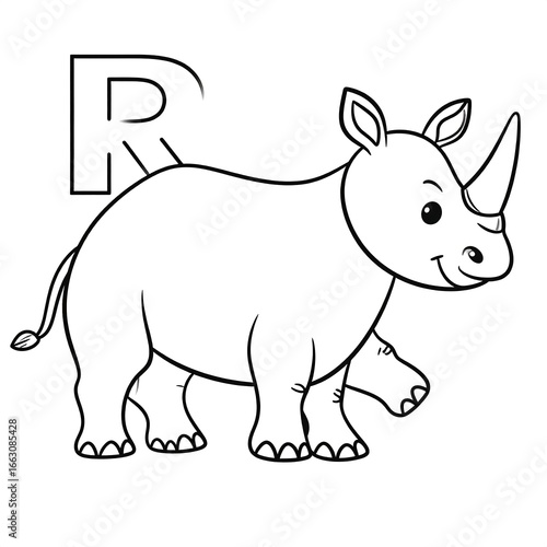 colouring, page, rhino, animal, cute, cartoon, letter, alphabet, educational, black, white, outline, illustration, children, children, printable, drawing, simple, fun, learning, activity, print, vignetting, graphic, art, template, easy, shape, picture