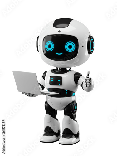 Cute Robot Holding Laptop Showing Thumbs Up