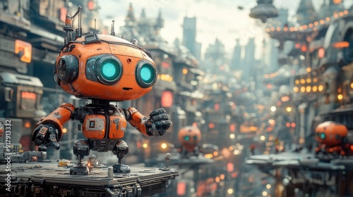 robot, cute, futuristic, city, technology, gear, future, artificial, intelligence, innovation, robotic, mechanical, urban, science, fiction, modern, part, digital, artwork, character, exploration, adventure, cyberspace, environment, creativity, concept