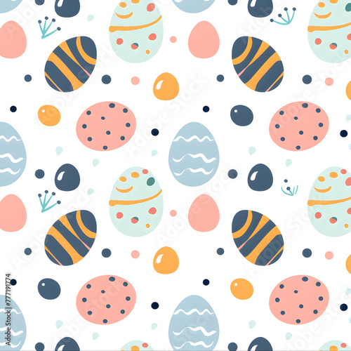 Cute seamless pattern with Easter eggs, spring flowers and leaves. Perfect for holiday designs, print, decorations wrapping paper, wallpaper.