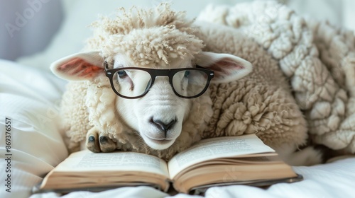 sheep, lamb, farm animal, farming, mammal, wool, ewe, rural, character, white, young, flock, cattle, domestic, peacefully, cute, animal, goggles, lying, down, reading, book, adorable, bed, bedchamber, blanket, chill, comfort, creature, fantasy, fiction, hobby, home, intellectual, literature, pet, relaxing, resting, soft, tranquil, warm, room, indoor
