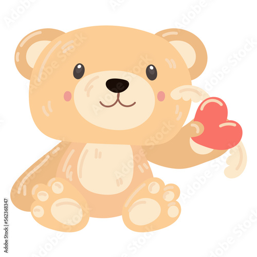 Cute teddy bear in paws heart with wings. A stuffed bear toy as a gift for Valentine's Day. A gift for your loved ones. A kind toy for children in delicate shades. Cartoon vector illustration