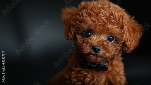 Cute toy poodle dog in elegant business attire, adorable character portrait for commercial use