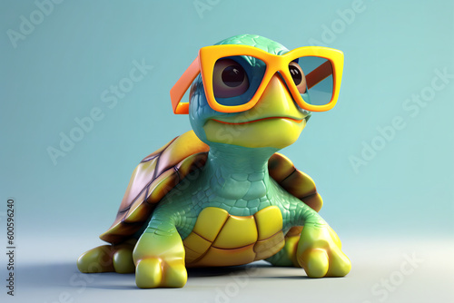 Cute Turtle With Glasses On The Solid Beautiful Background. Generative AI.