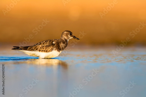 Cute water bird. Common bird Ruddy Turnstone. Colorful nature background. Bird: Ruddy Turnstone. Arenaria interpres.