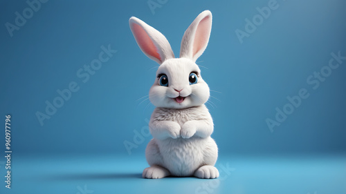 rabbit, rabbit, white, fluffy, cute, sitting, blue, background, eye, big, adorable, happy, smiling, soft, fur, ear, long, small, sweet, charming, playful, lovely, photogenic, pet, animal, mammal, nature, wildlife, easter, holiday, celebration, joy, fun, childhood, innocent, whimsical