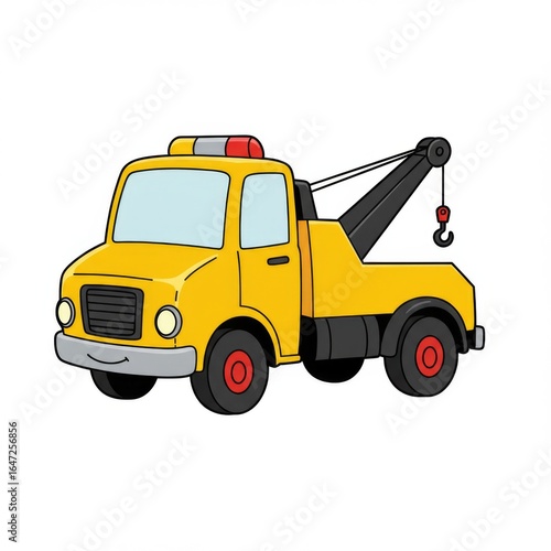 tow, truck, crane, vehicle, yellow, cartoon, illustration, cute, happy, transportation, rescue, repair, service, help, assistance, emergency, roadside, mechanic, auto, automotive, motor, machine, engine, wheel, tire, red, black, white, simple, clean, design, drawing, art, graphic, image, digital, pixel, icon, symbol, clip art, flat, style, isolated, background
