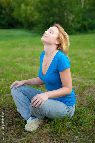 activity, barefoot beach, beauty, body, breathing, caucasian, colours, concentration, contemplation, exercise, female, grass, green, healthy, human, lifestyle, lotus, meditating, nature, 1, only, outdoors, people, person, position, relaxation, serene, sitting, solitude, spirituality, summer, tranquil, vitality, well-being, white, woman, yoga, young