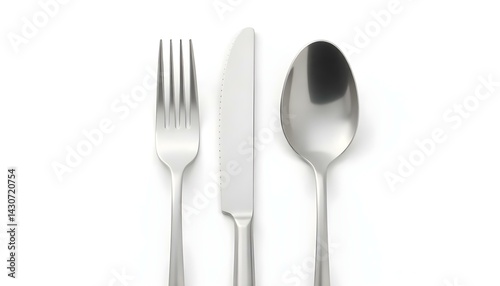 Cutlery set with Fork, Knife and Spoon isolated on white background