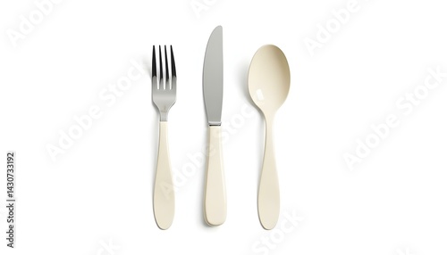 Cutlery set with Fork, Knife and Spoon isolated on white background
