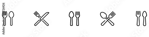Cutlery vector icon set. Fork, Spoon and Knife icons. Silverware icons. Black silverware icon. Vector Illustration. EPS 10