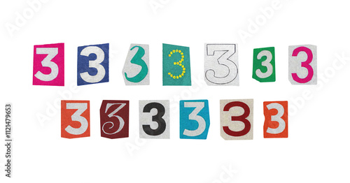 cut-out number "3" set from magazines on a transparent background, y2k ransom style