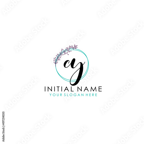 CY Initial letter handwriting and signature logo. Beauty vector initial logo .Fashion boutique floral and botanical