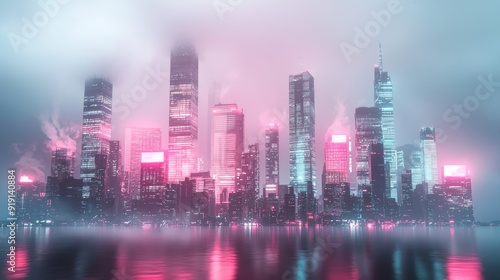 Cyber Metropolis: Modern Cityscape with Neon-Lit Skyscrapers and Intricate Details, Generative Ai