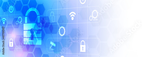 Cyber security and information or network protection with lock. Future technology web services for business and internet project
