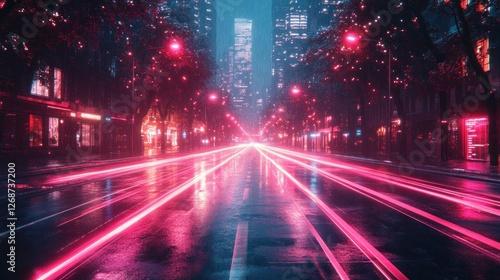 city, night, rain, street, neon, light, pink, traffic, car, wet, asphalt, urban, futuristic, technology, modern, glow, dark, vibrant, speed, motion, blur, building, architecture, landscape, road, line, light, streak, energy, atmosphere, mood, style, design, abstract, background, illustration, digital, art, scene, view, perspective, journey, travel, exploration, adventure, mystery, fantasy, science fiction