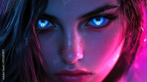 Cyberpunk Girl Close-Up: Glowing Eyes in Neon Light