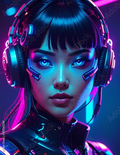 cyberpunk portrait of beautiful young asian girl with beautiful eyes , close up portrait